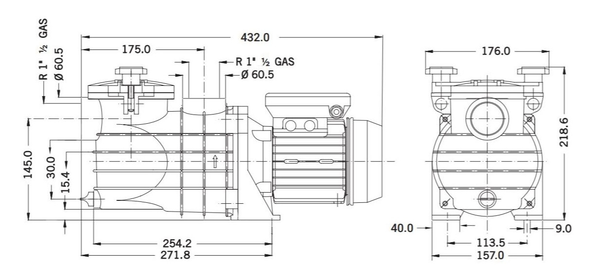 140-170 m³ | 8 horas | 50 m³/h/m² | 800 milímetros | 1,50 CV |