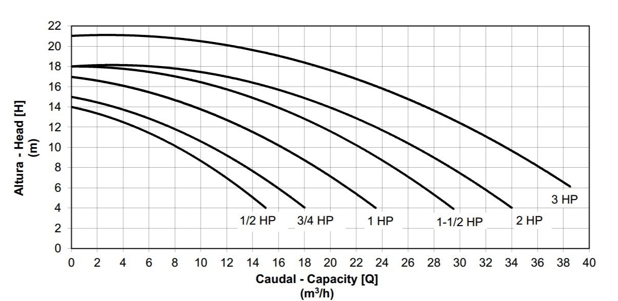 230 V II 50 Hz | 230/400 V 50 Hz | HP | 230 V II | 400 V III | 230 V III | kW | kW | m3 /h | metro |